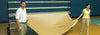 Two people can lay down & roll up sections covering an entire gym floor.